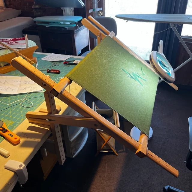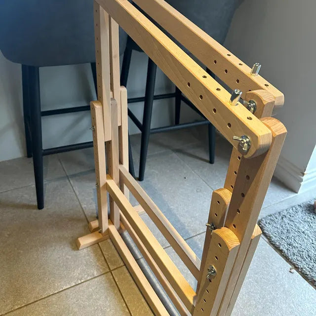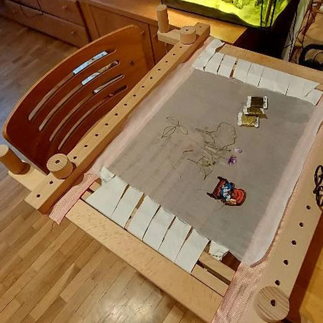 The frame is beautiful, sturdy, and functional. One piece was originally too short, but it has been replaced, and it works perfectly. Thank you for replacing my part and letting me begin using my embroidery frame.